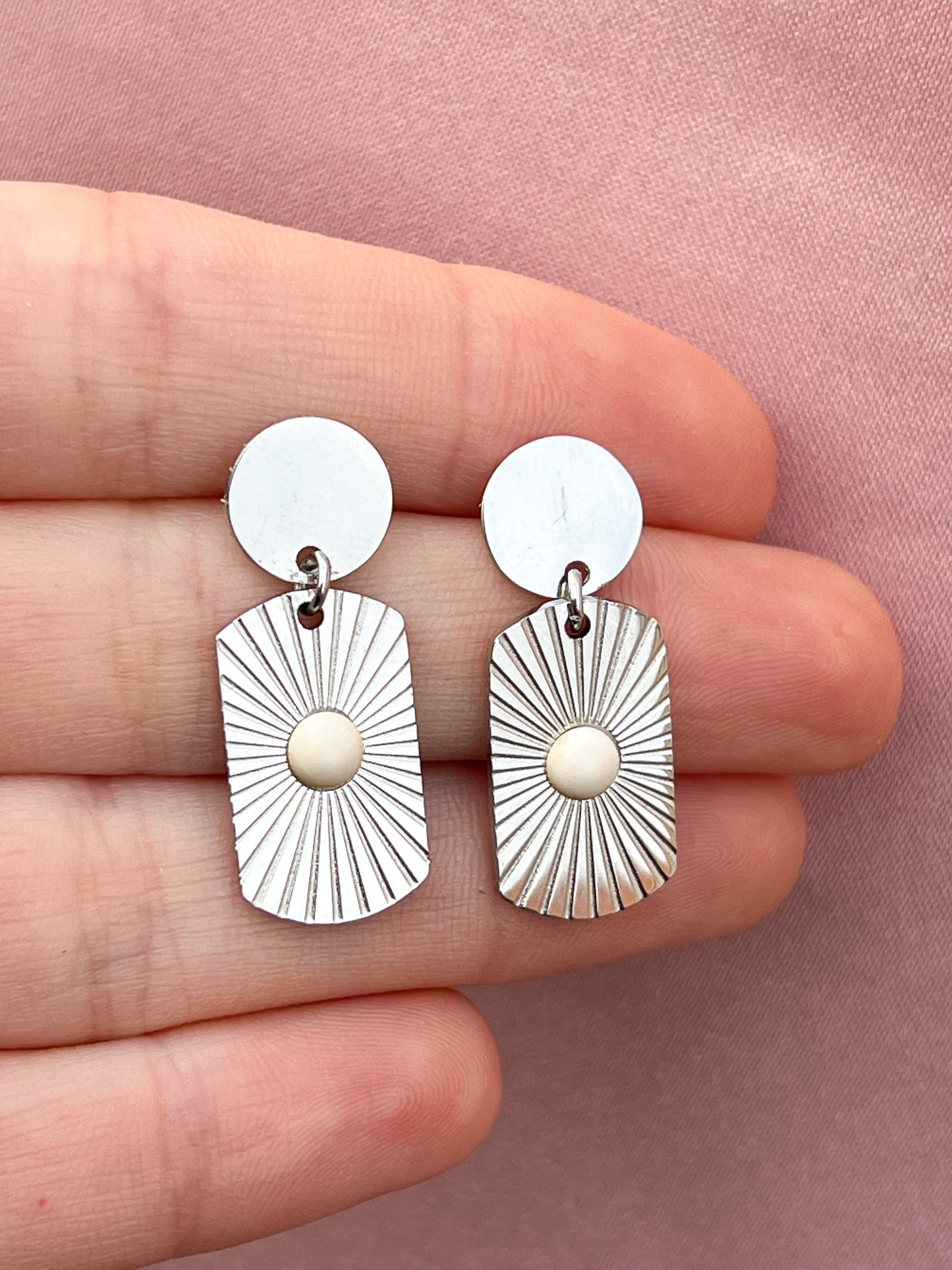 Boucles d’oreilles plaque perles blanches